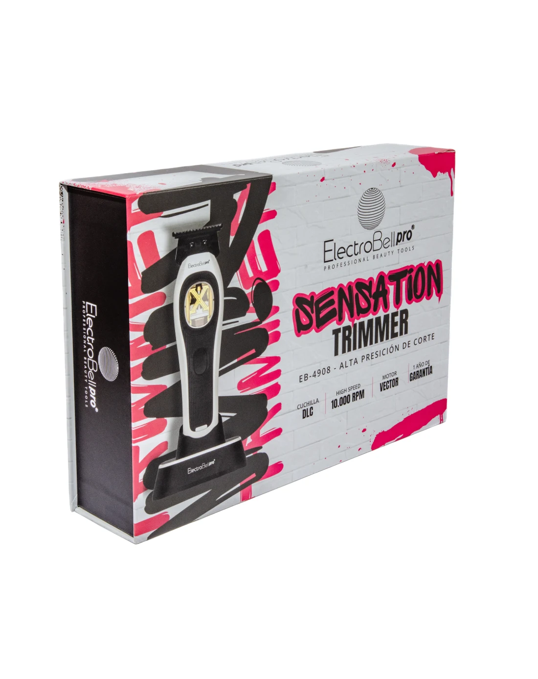 La Sensation Trimmer EB-4908 es una patillera profesional diseñada para marcaciones precisas y acabados definidos con control absoluto. Equipada con un motor Vector Magnético de alto rendimiento, garantiza delineados limpios y un funcionamiento estable en cada detalle. Su diseño versátil permite personalizar la herramienta con tres carcasas intercambiables para adaptarse al estilo de tu barbería.